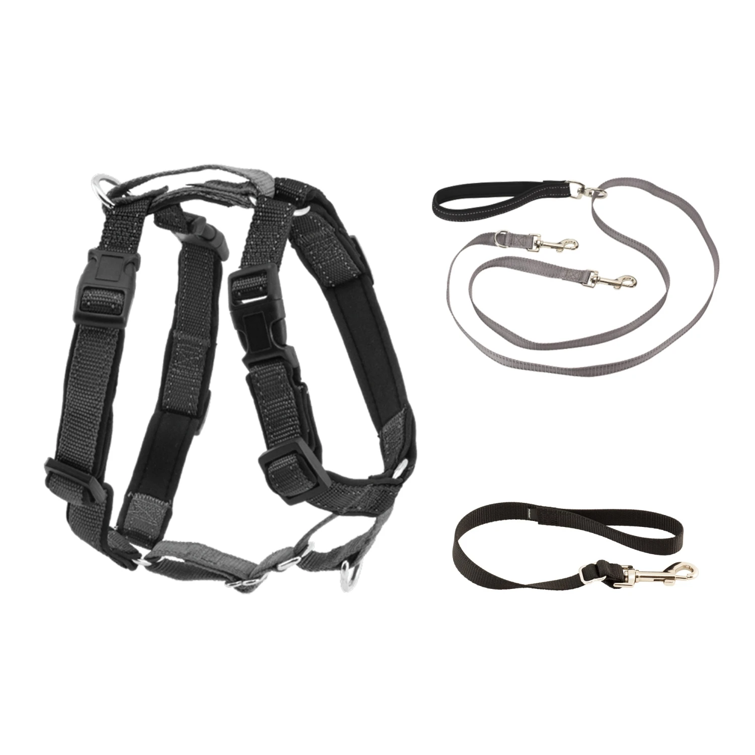 - Reflective Nylon – Added visibility on the 3 in 1 Harness and the Two Point Control Leash allows you and your dog to be seen during early morning or evening strolls