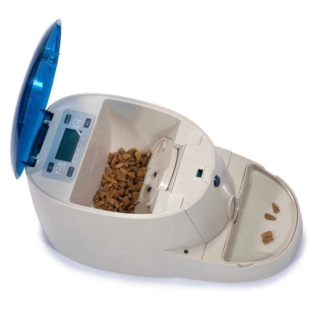 The AutoTrainer teaches your dog not to bark by rewarding quiet time. The collar detects when your dog is barking using patented dual-detection technology, so only your dog’s barks are recorded by the collar. When your dog isn’t barking, he gets rewarded with treats or kibble from the food dispenser. Your dog will quickly learn to stop barking, and you can even track his progress with the bark history display screen. The dispenser spaces out your dog’s meal, perfect for dogs who gulp their food or eat too quickly.