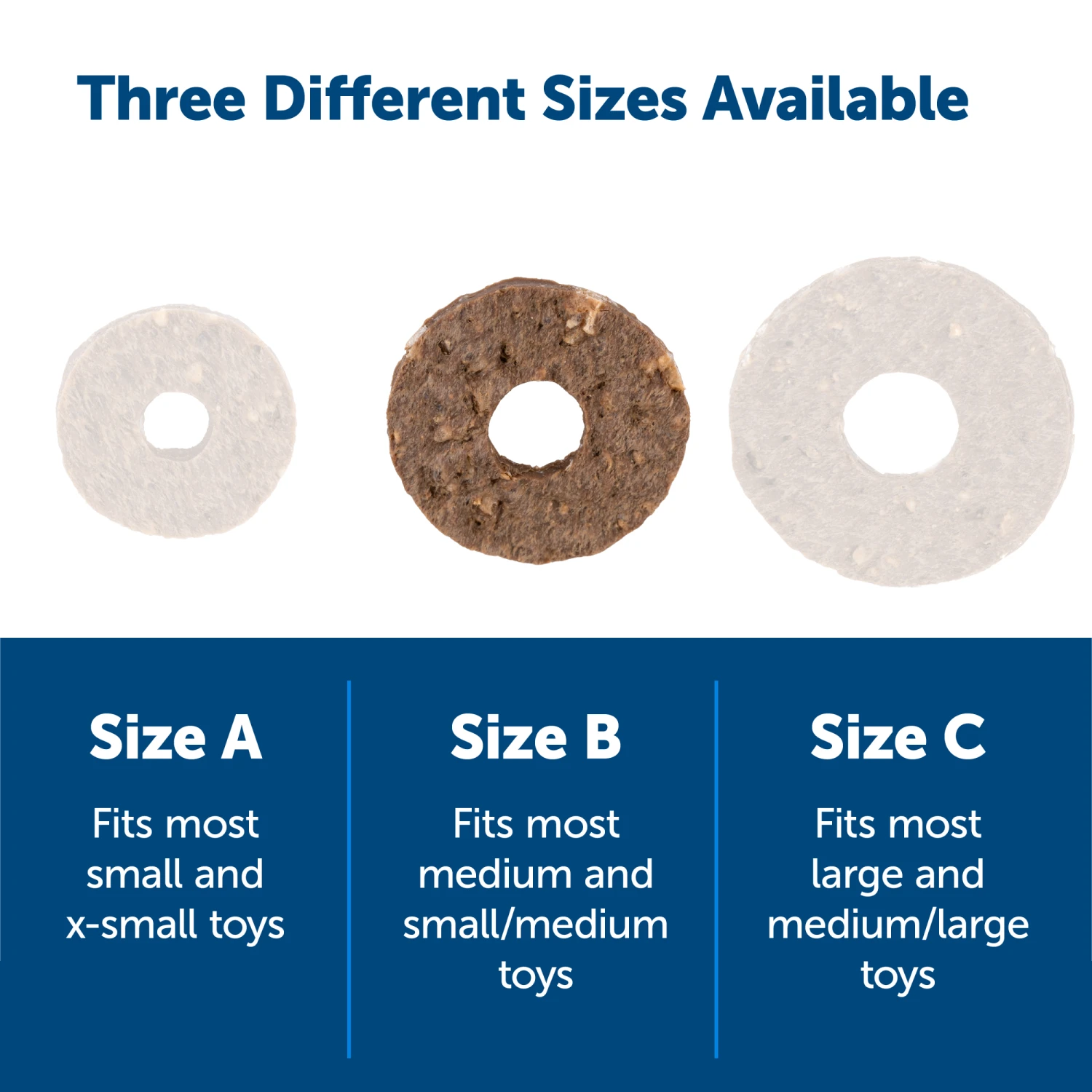 Keep your dog’s pantry stocked with the PetSafe® Dog Treat Ring Variety Pack. As our largest treat pack option, this package includes 60 treat ring refills in peanut butter and original rawhide flavors (30 of each flavor). Made from natural rawhide with grain-free ingredients, these treat rings are a tasty distraction for pets that are bored, anxious or love to chew. By setting up a subscription, you can use these treat rings to refresh your dog’s toy after every use, making your dog feel like he is playing with a new toy every time. Always having treat rings on hand means you can offer your dog a distraction while you do chores, go to work, or leave him alone without worry. Your pet deserves the best. Trust PetSafe® to help keep your pet healthy, safe and happy.
