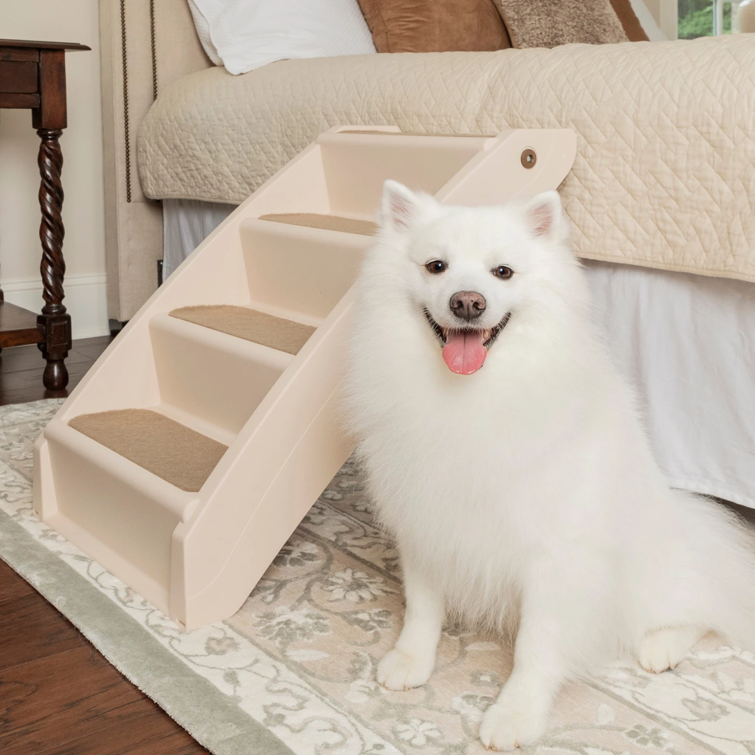 - Treads, siderails and nonskid feet help pets confidently walk up the steps on their own