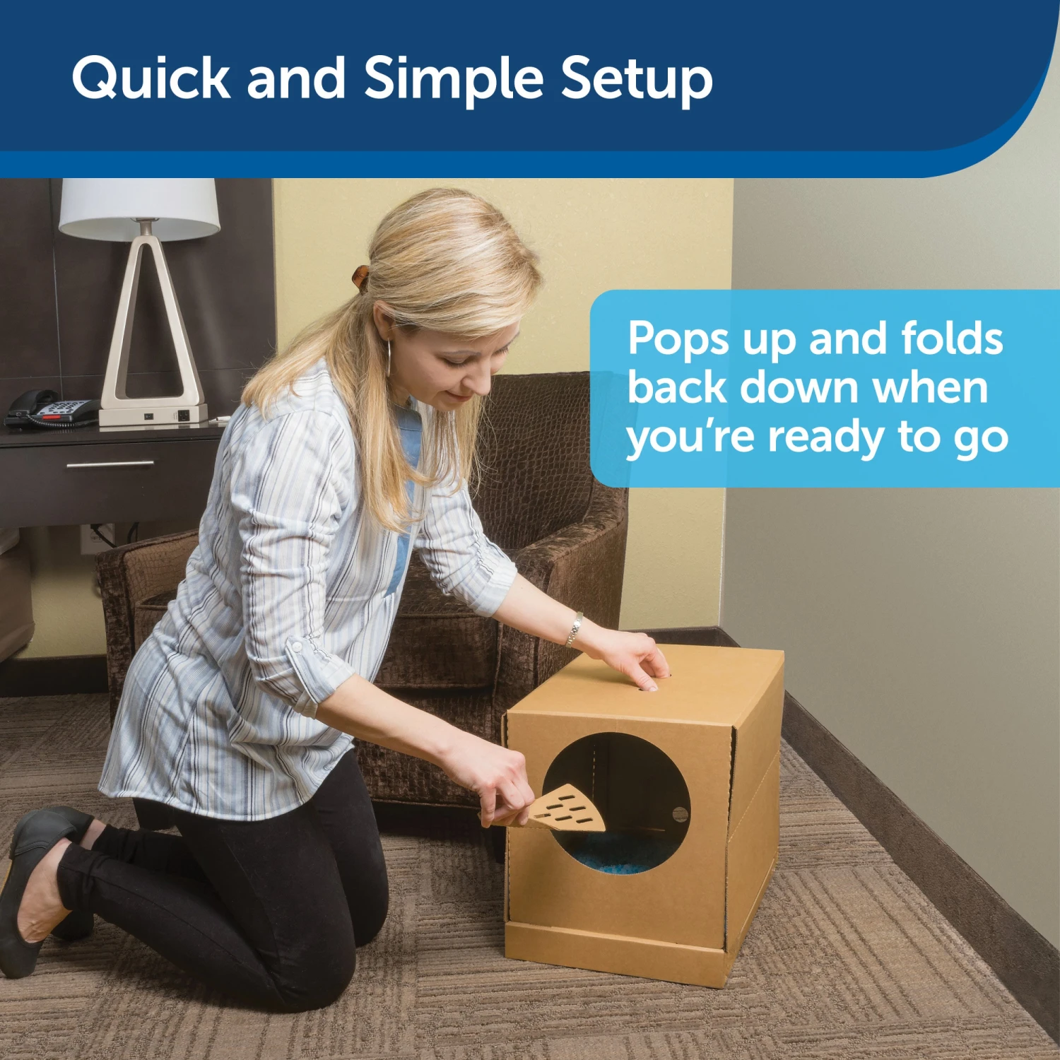 Designed to pop up in seconds and fold down just as quickly, this litter box is all about convenience. Those impromptu trips will be easier when you have a dependable litter box solution at your side!