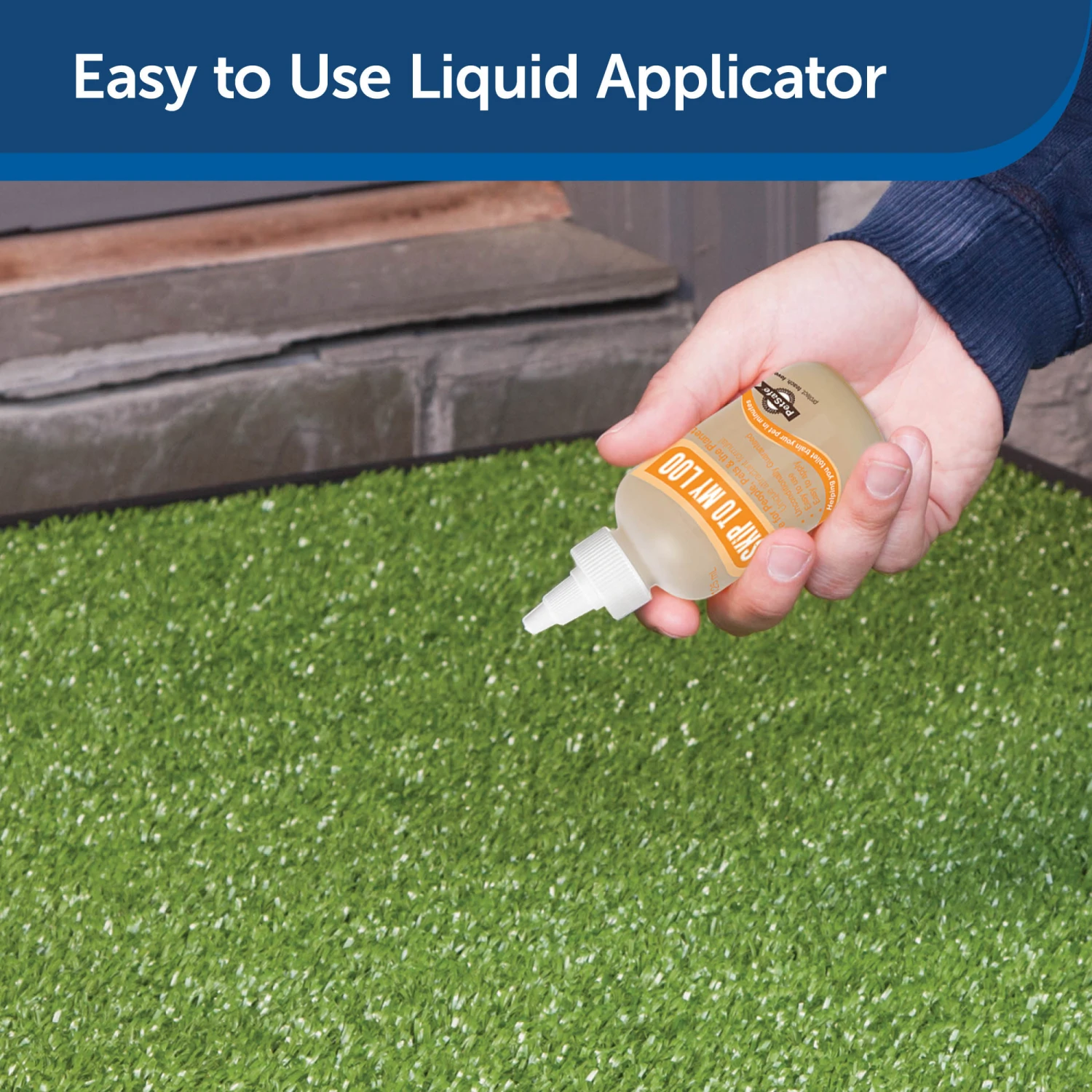 Perfect for potty training, the unique scent of the PetSafe® Skip To My Loo House Training Scent is designed to encourage your pet to use the toilet in a specific spot. Use it in a corner of your yard outside to keep your pet’s waste confined to one area. You can also use it on the Pet Loo to help train your pet. The scientifically formulated solution mimics animal urine because pets prefer to use the bathroom in the same spot as other animals. PetSafe® brand is here to help you and your pet live happy together™.