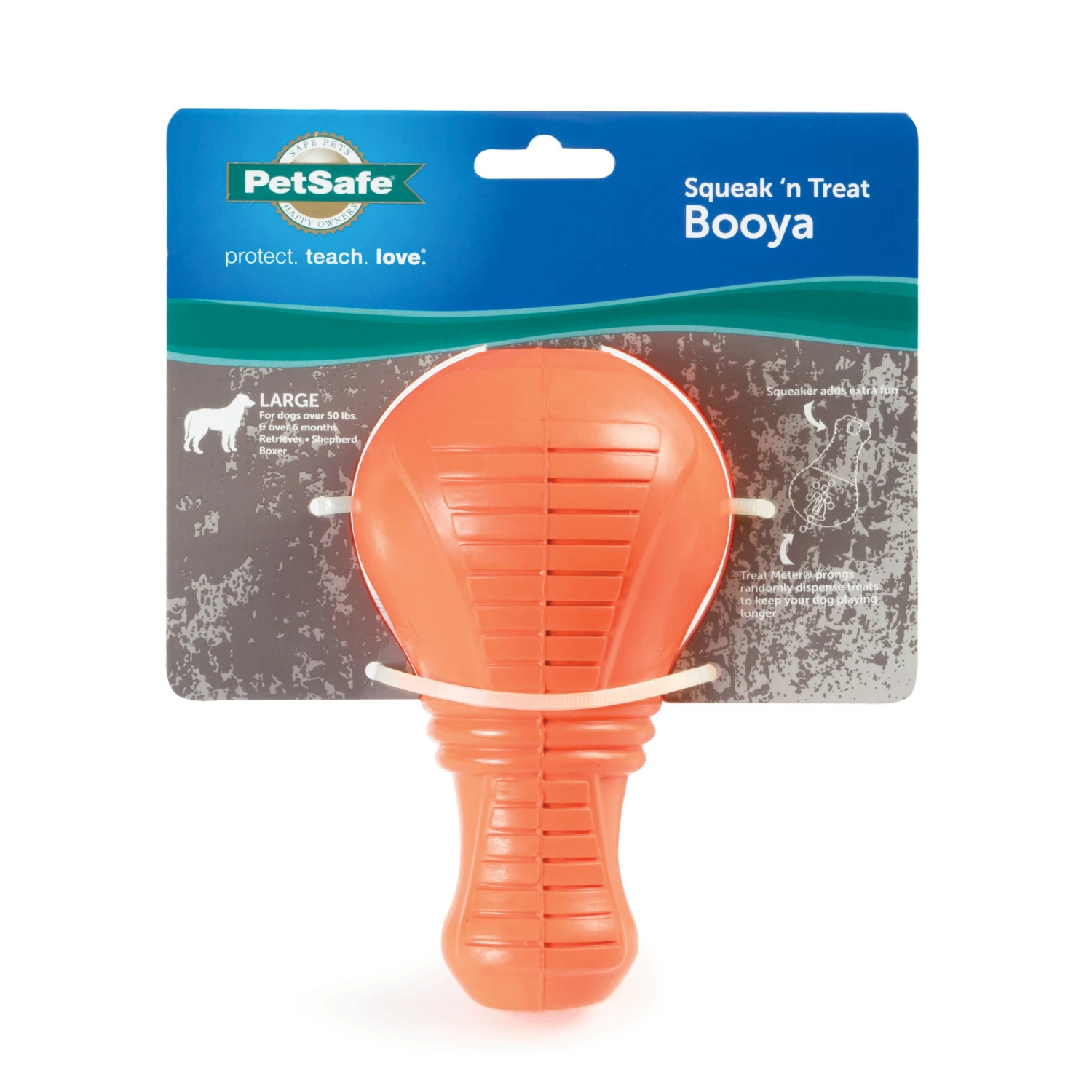 Busy Buddy Squeak ‘n Treat toys are the first treat-dispensing toys that also squeak! Fill the toy with your dog’s favorite treats. The treats pop out as your dog plays. The built-in reward keeps your dog actively engaged in healthy play instead of destructive chewing. The squeak adds to the excitement! The squeaky sound appeals to your dog’s natural prey drive. The durable rubber design has a funky bounce for games of fetch or tug-of-war. Trim the patented Treat Meter® prongs so more treats fall out.