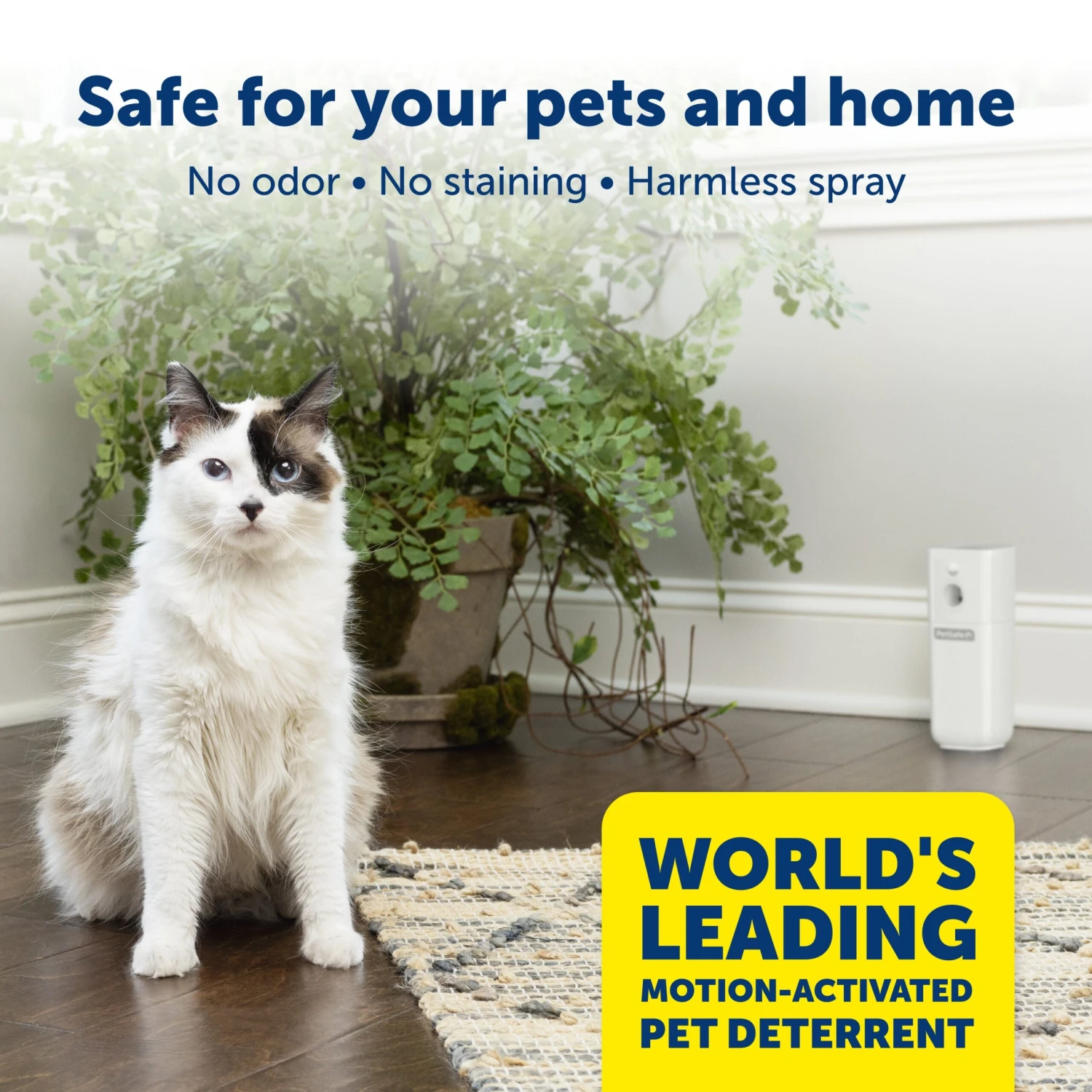 Curious cats and dogs love exploring areas they shouldn’t, like your kitchen counter or trash can. SSSCAT® Automatic Spray Pet Deterrent keeps pets away from unwanted areas, making for a more pet-friendly home. Our automatic spray deterrent senses your pet’s motion from up to 3 feet away and emits a quick, odorless spray as a gentle reminder to stay away from off-limits areas. Think of it as a second set of eyes that can help protect your pet from hazards in the home.